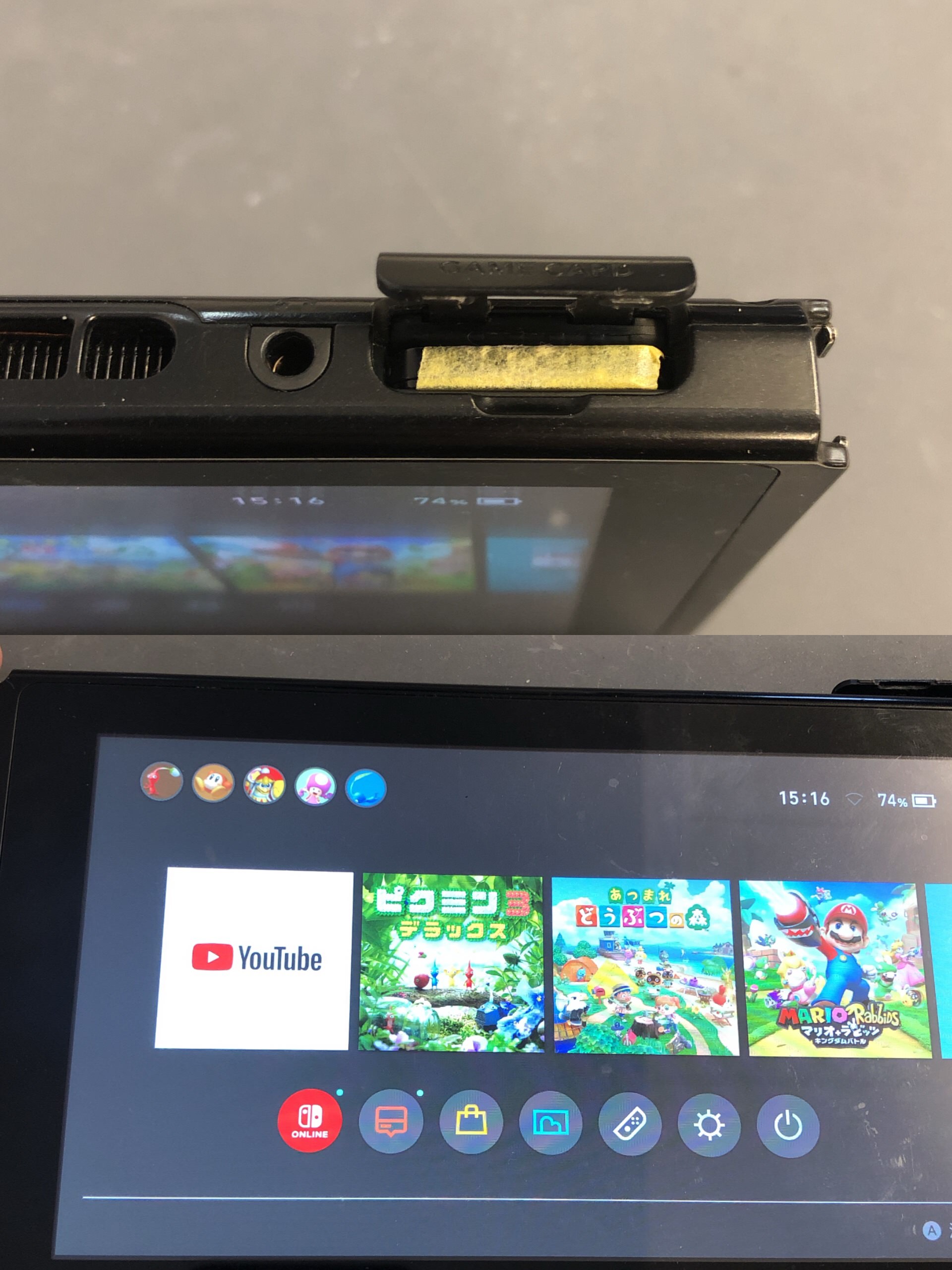 ゲームカセットを入れるとエラーが発生してしまい遊べない状態の任天堂スイッチの修理を行いました。