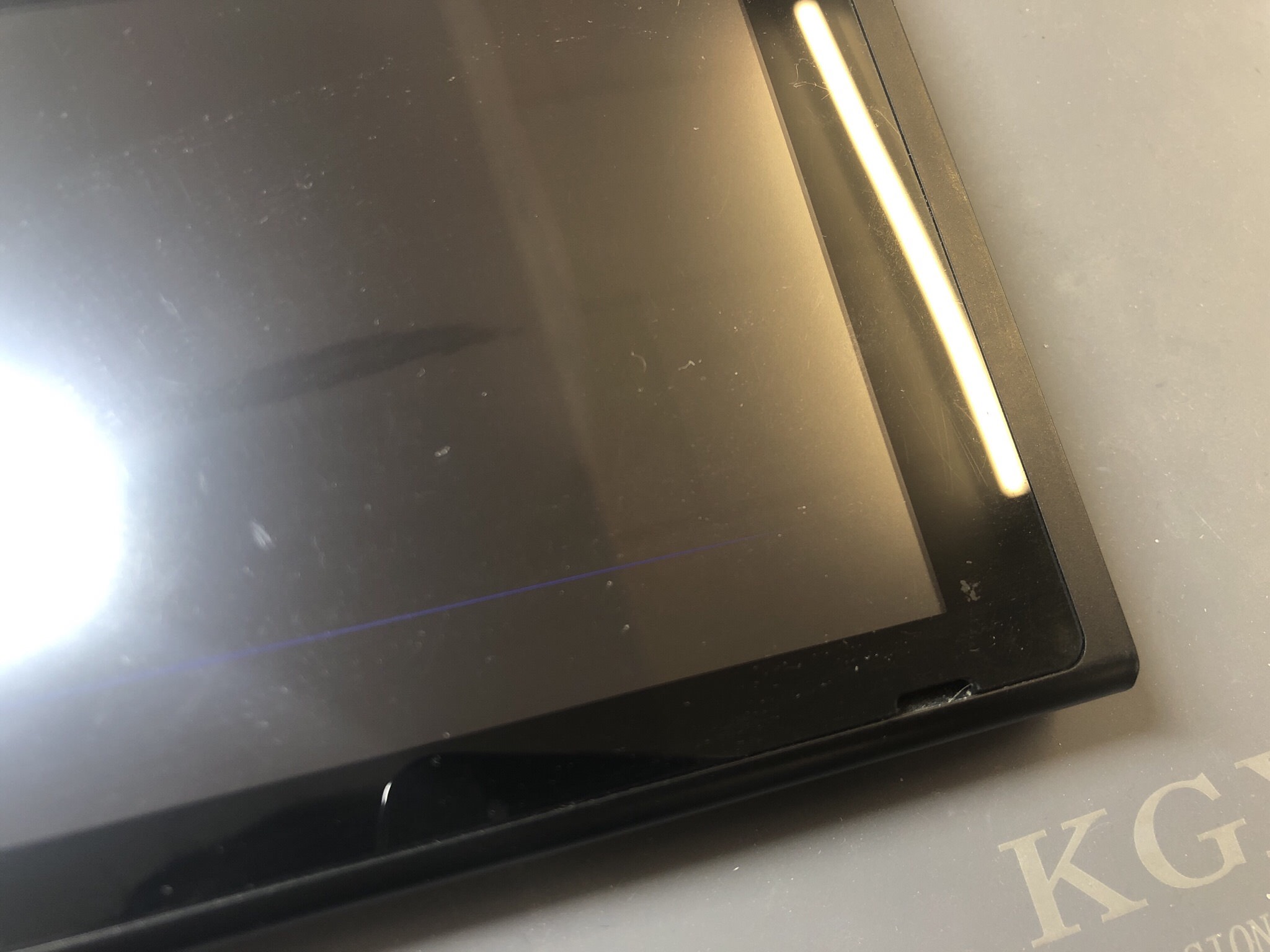 よく見てみると、液晶が破損し一本の青い線が映っていました。