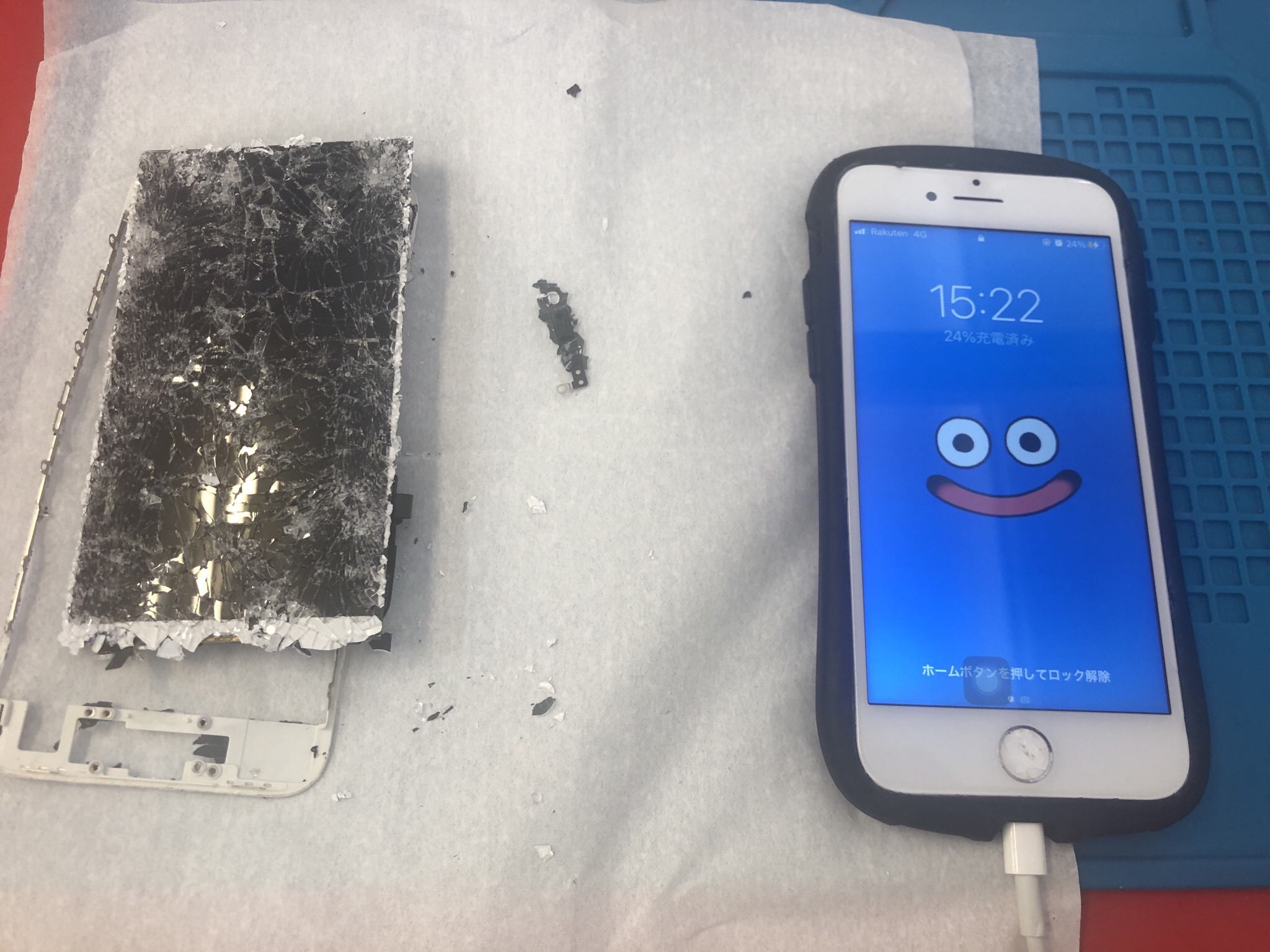 丸々交換することも可能ですが、指紋認証があるホームボタンだけは治らないため、最低限修理を行い、データ救出後買い換える事になりました。