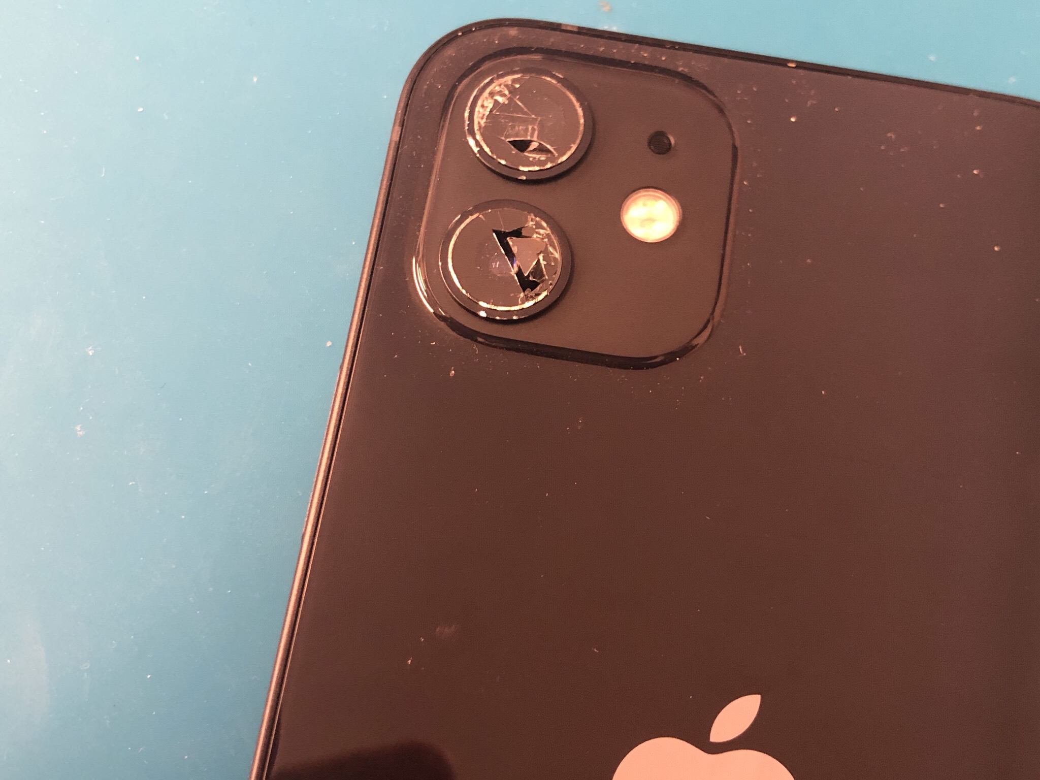【iPhone12】広角レンズに超広角レンズも割れてしまいガラスが取れている…。 レンズ張替えもお任せ下さい!