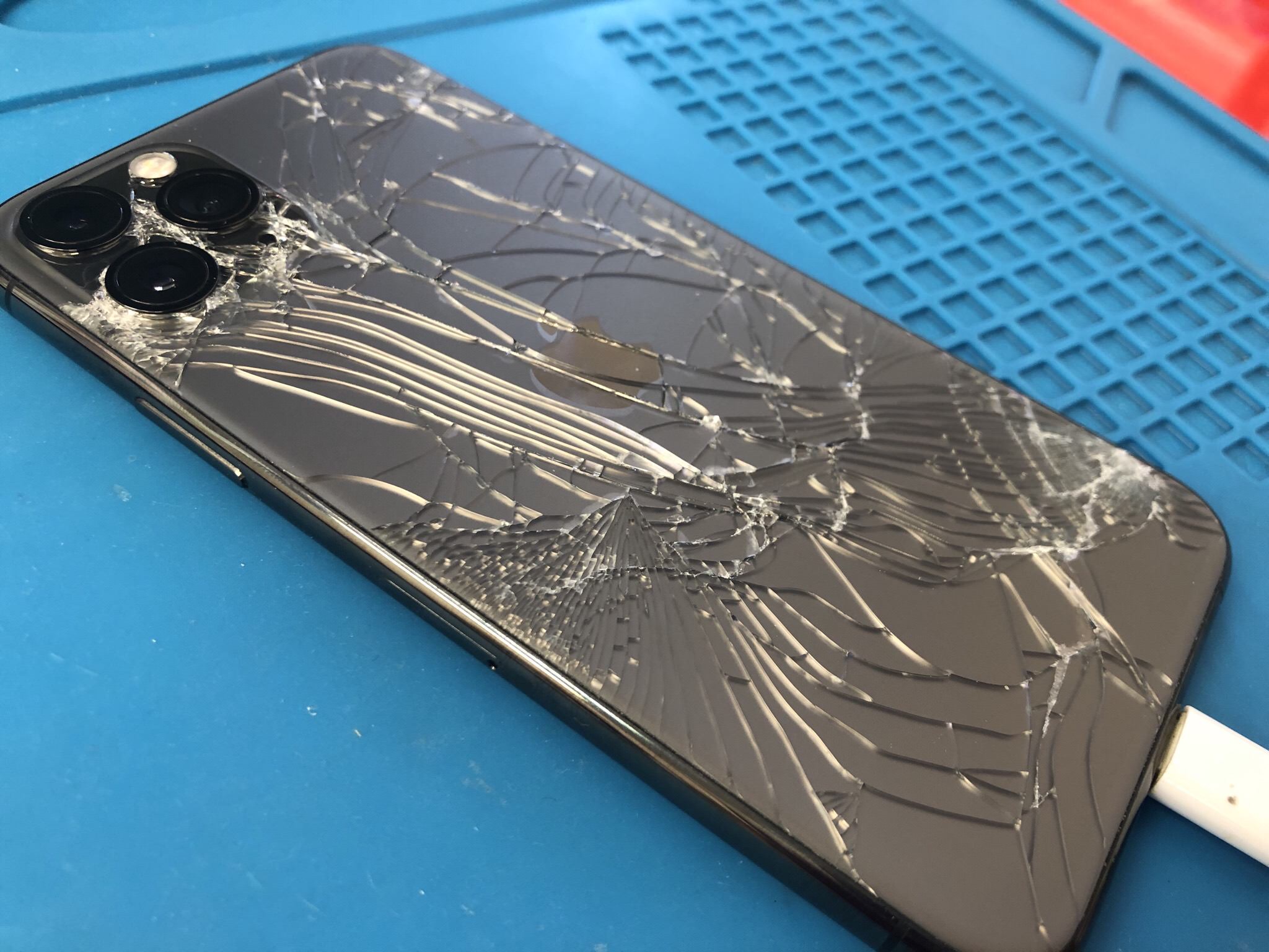 【iPhone11Pro】背面のガラスがバキバキに割れてしまったため交換のご依頼を頂きました! 当店では背面・フレーム丸ごと交換です!