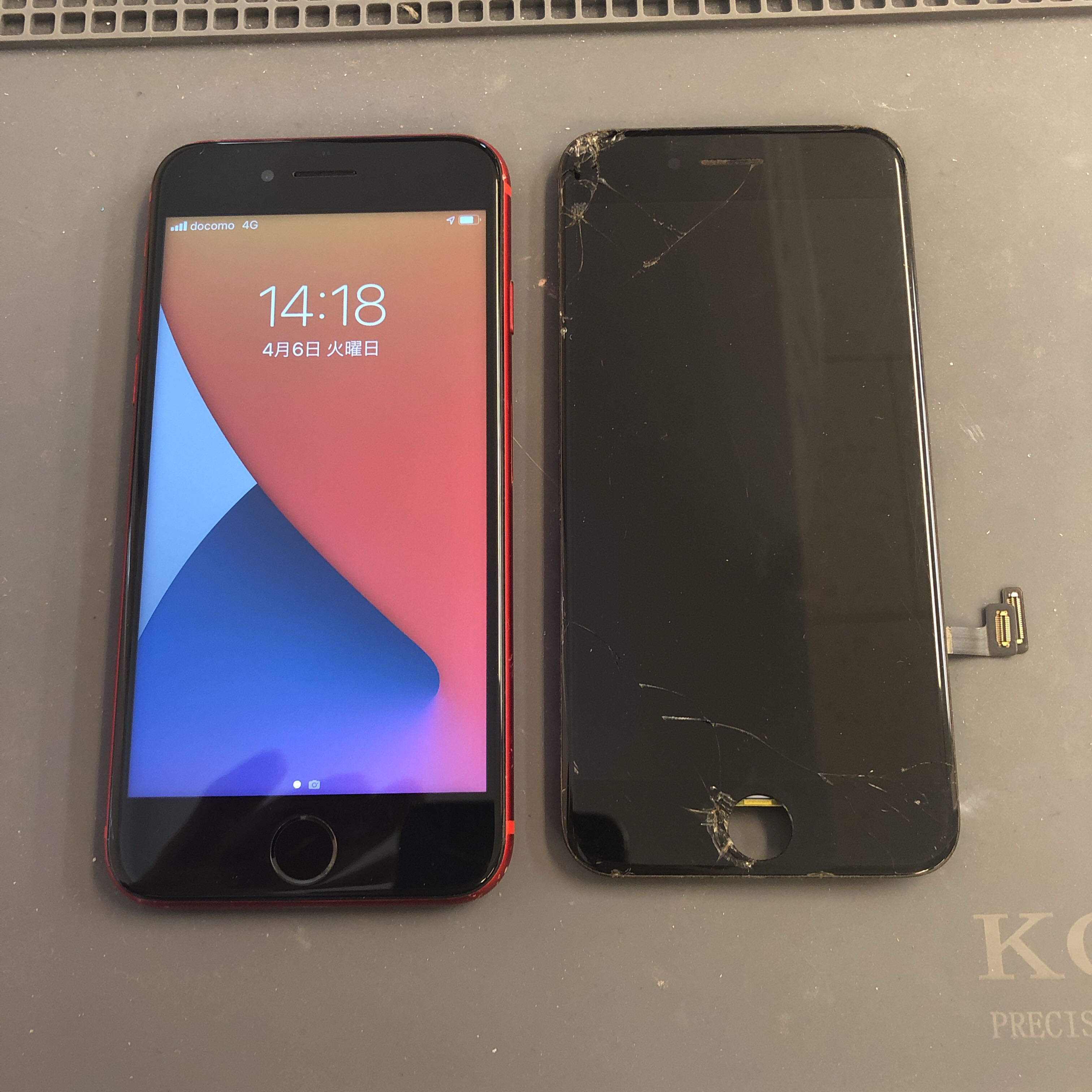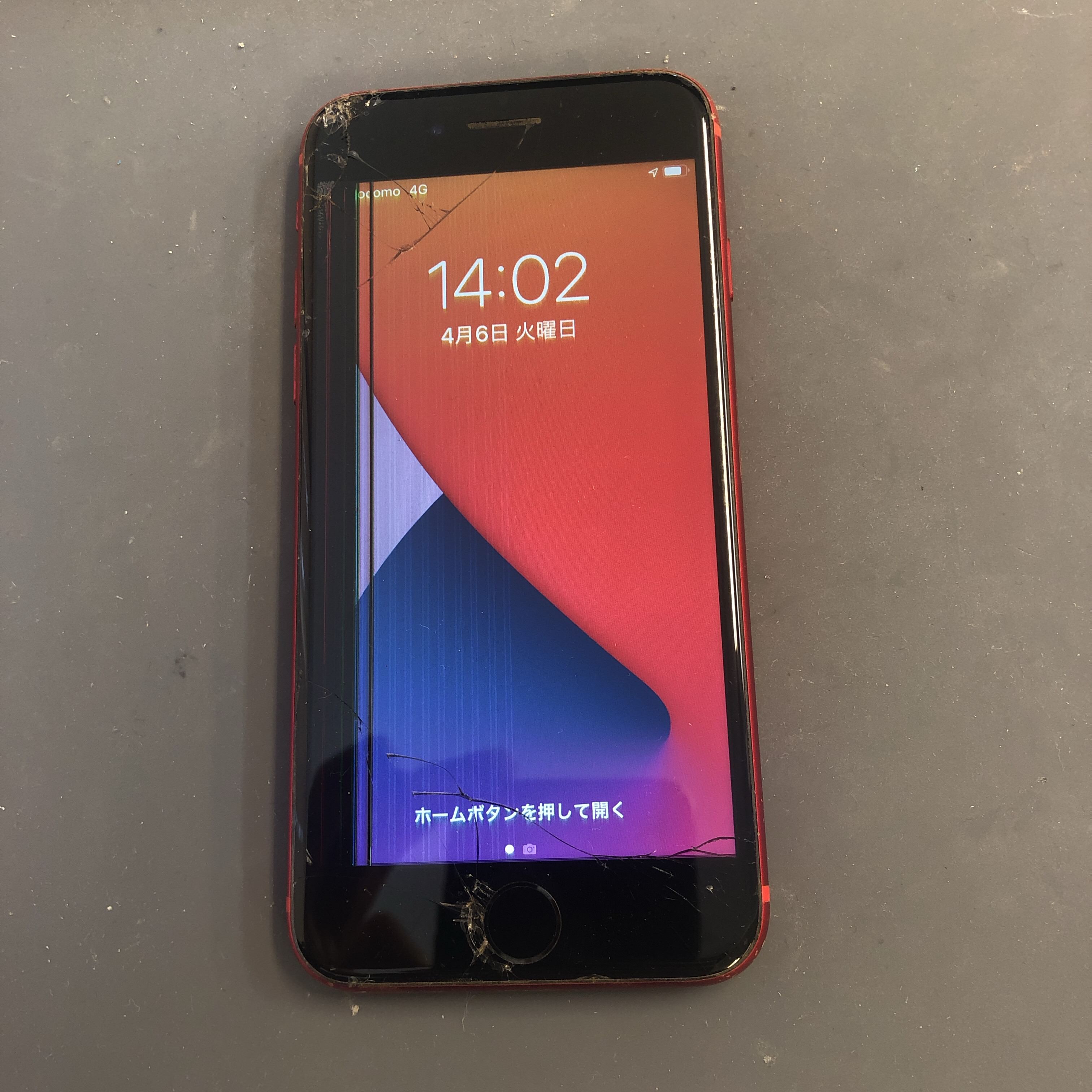 落下によりガラスと液晶が割れてしまったiPhoneSE2。