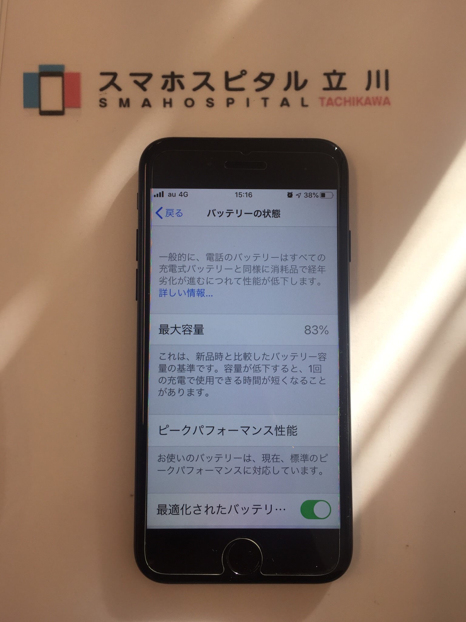 設定から確認ができお持込頂いた端末は83%まで下がっている端末です。