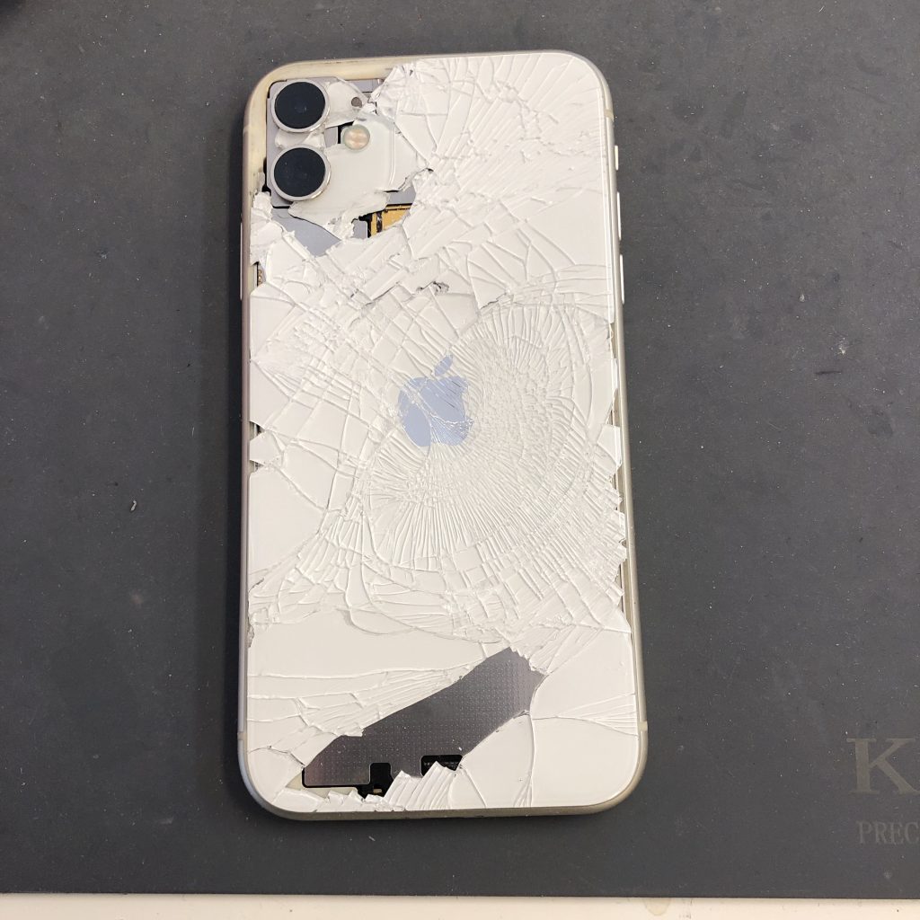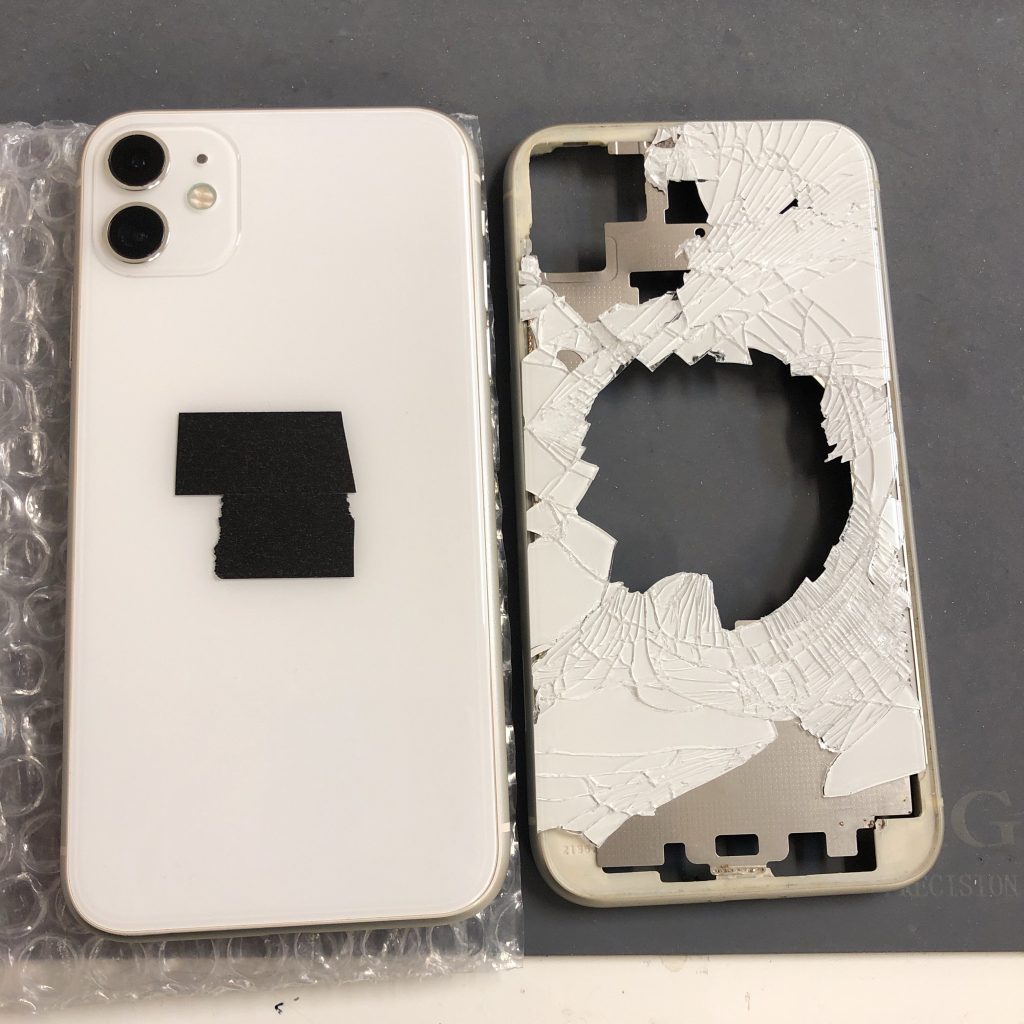 iphone11の背面ガラスをバキバキに割ってしまい、中身が見えている状態の端末の修理依頼を頂きました!