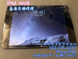 【iPad Mini4】バキバキに破損したiPad mini4も綺麗な画面へ元通り! 立川周辺でiPadの画面修理ならスマホスピタル立川店へ!