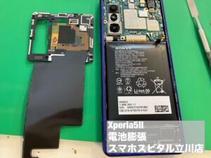 Xperia5Ⅱのバッテリーが膨張し背面が浮いているため修理へ!