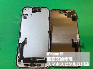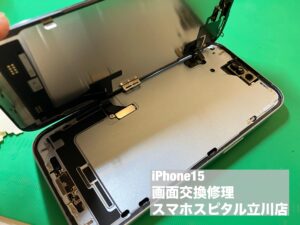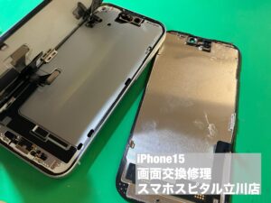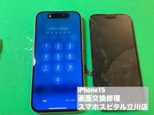 iPhone15 有機EL故障により画面が映らない。即日修理に対応したスマホスピタル立川店にお任せ下さい!
