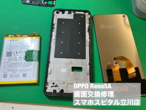 OPPO Reno5Aのディスプレイ故障により操作不可の端末のお持ち込みを頂きました。