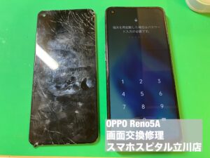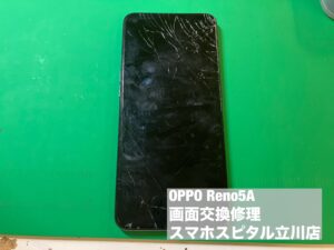 OPPO Reno5Aのガラス割れ・液晶割れし操作不可な端末の修理へ!