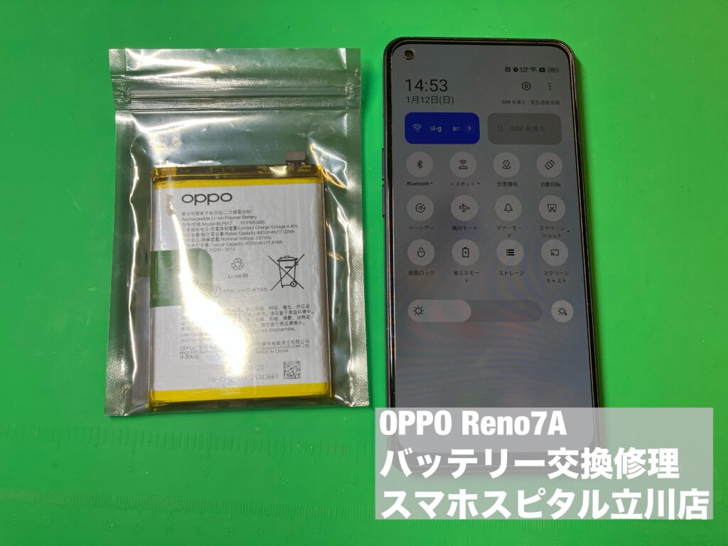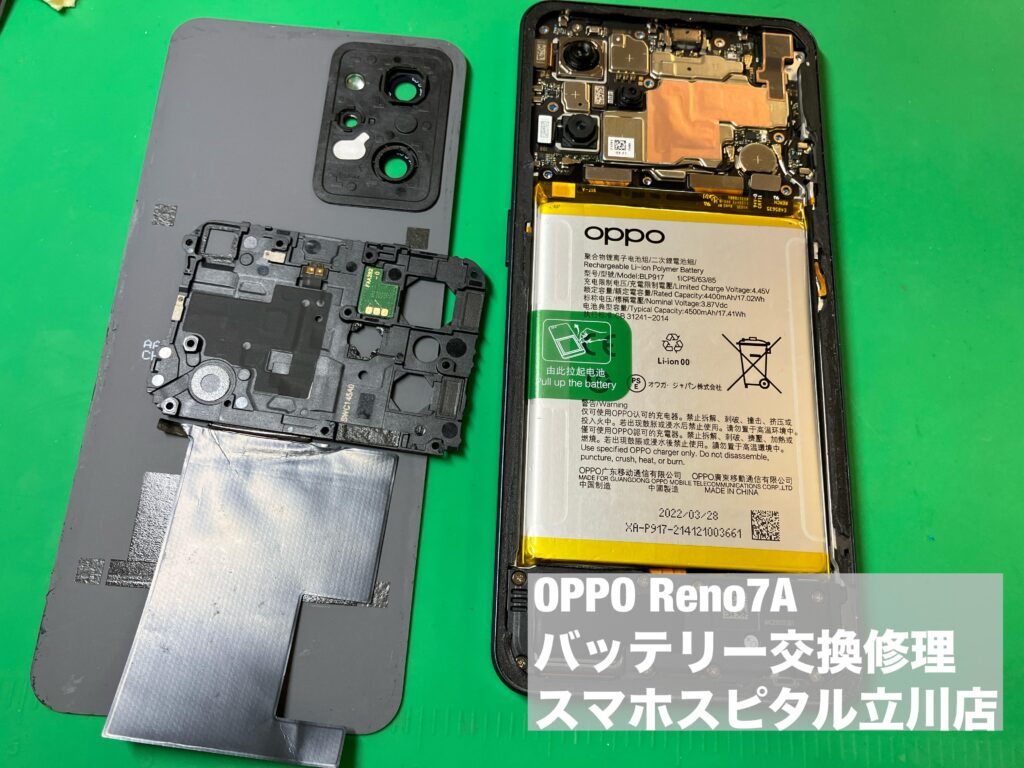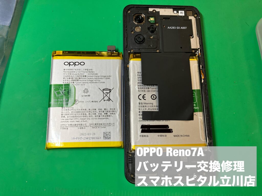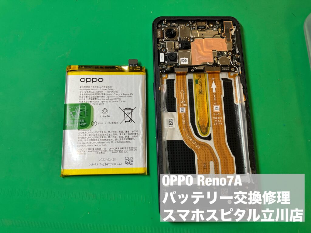 OPPO Reno7Aの通常使用による電池劣化のため交換のご依頼へ! 大容量バッテリーでも2,3年経過すると持ちが悪化!