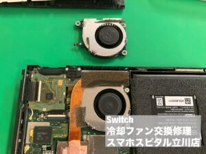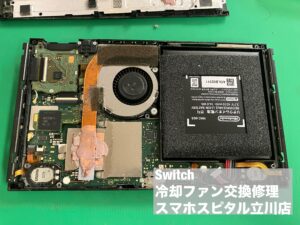 任天堂Switchで遊んでいると高温注意の警告が表示されるようになり、まともに遊べなくなったとの事で修理依頼をいただきました。