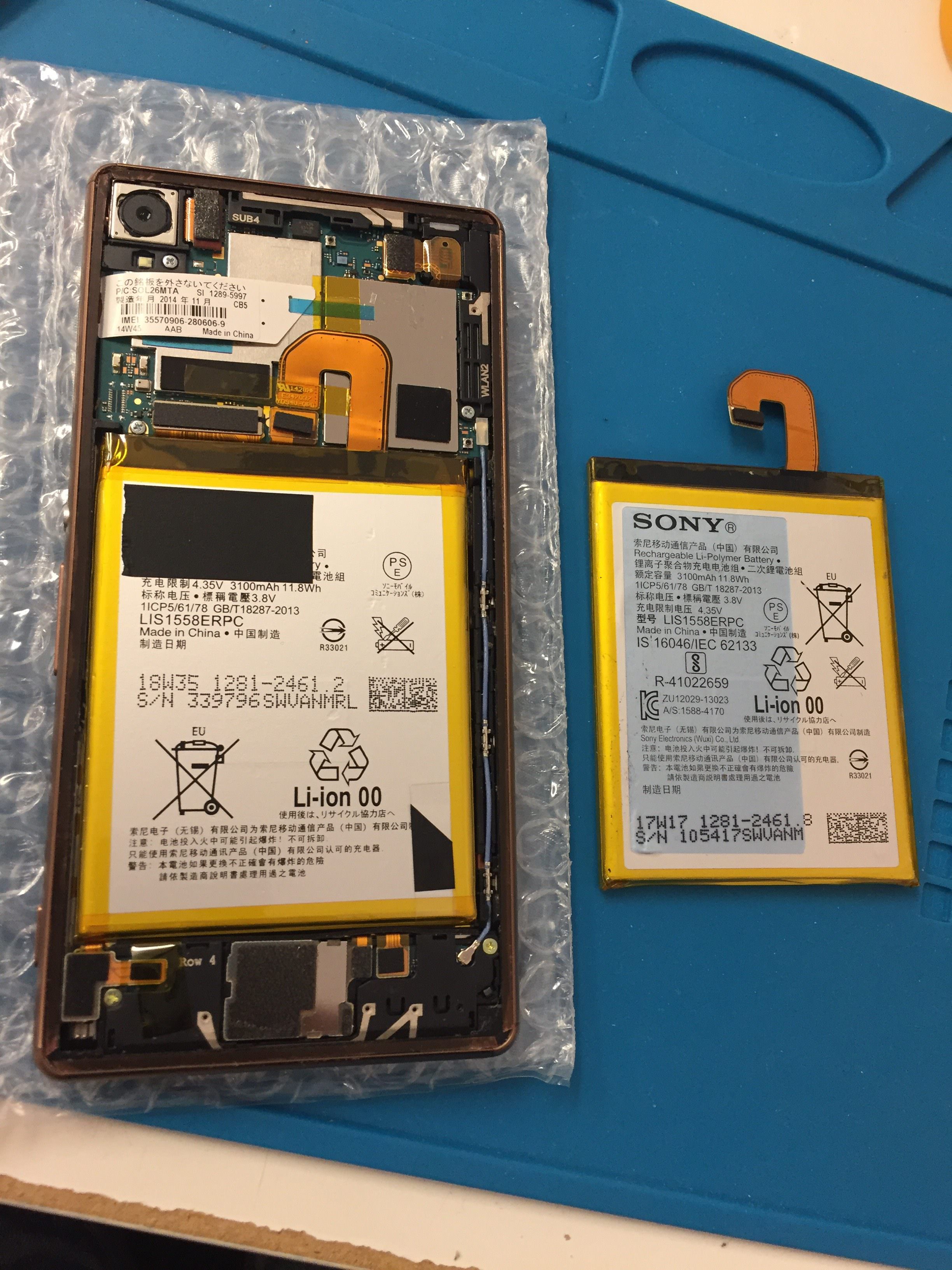 xperiaZ3のバッテリー交換の修理風景