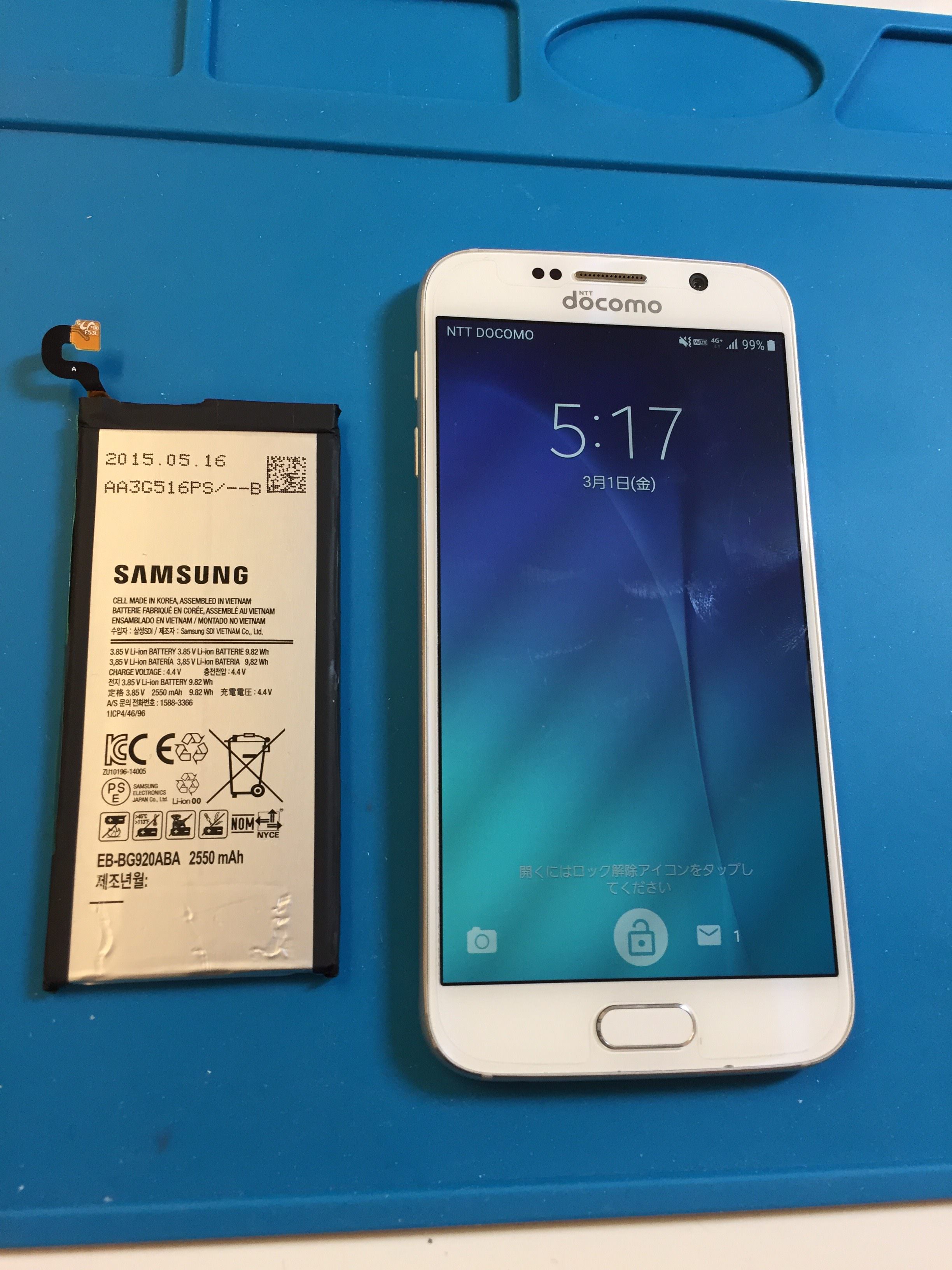電池の減りがはやい! 約4年間使っているGalaxy S6(SC-05G) バッテリー交換 修理時間120分