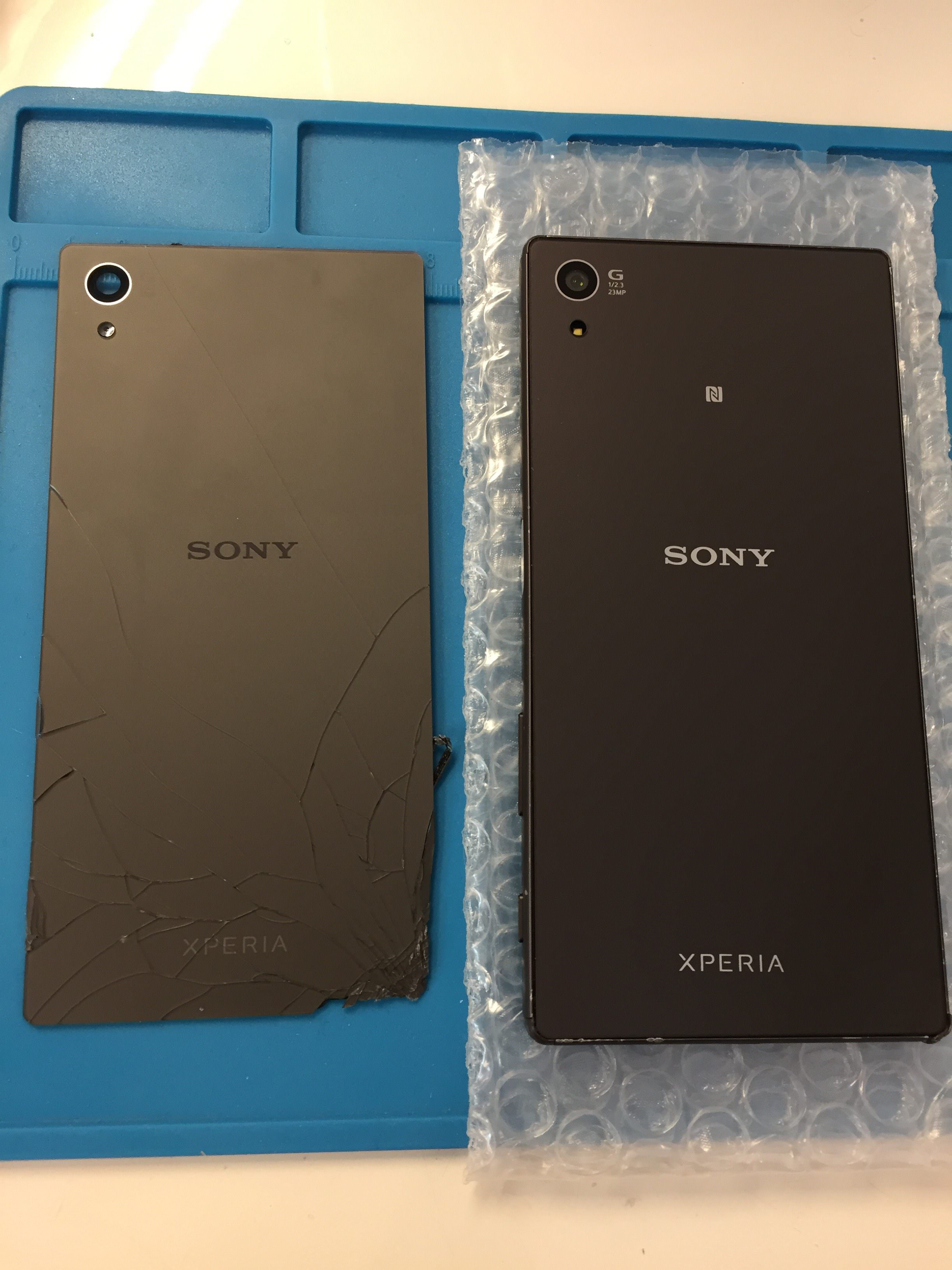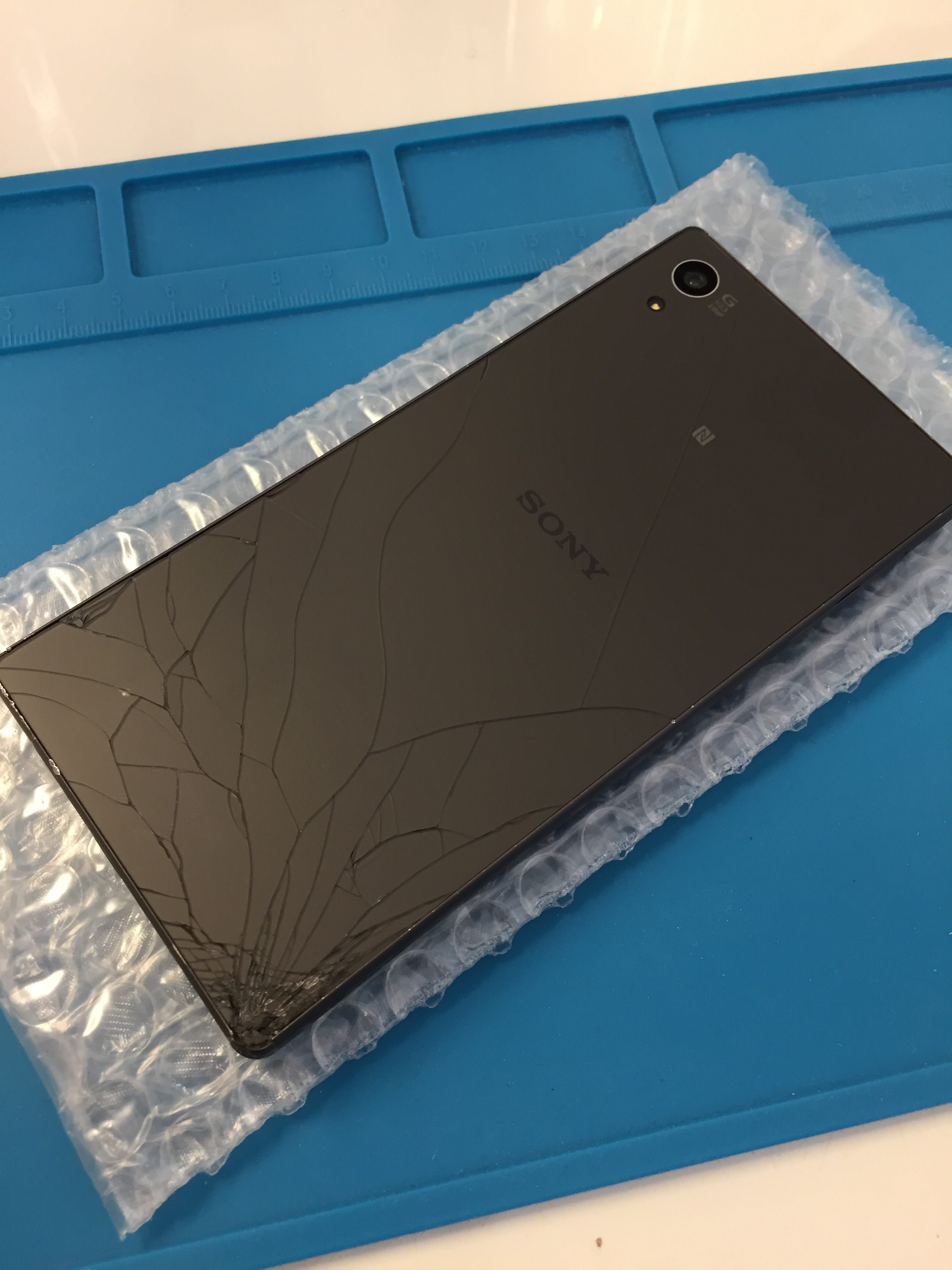 【Xperia Z5】コンクリートへ落としてしまい裏蓋が割れてしまった… 裏蓋の交換修理