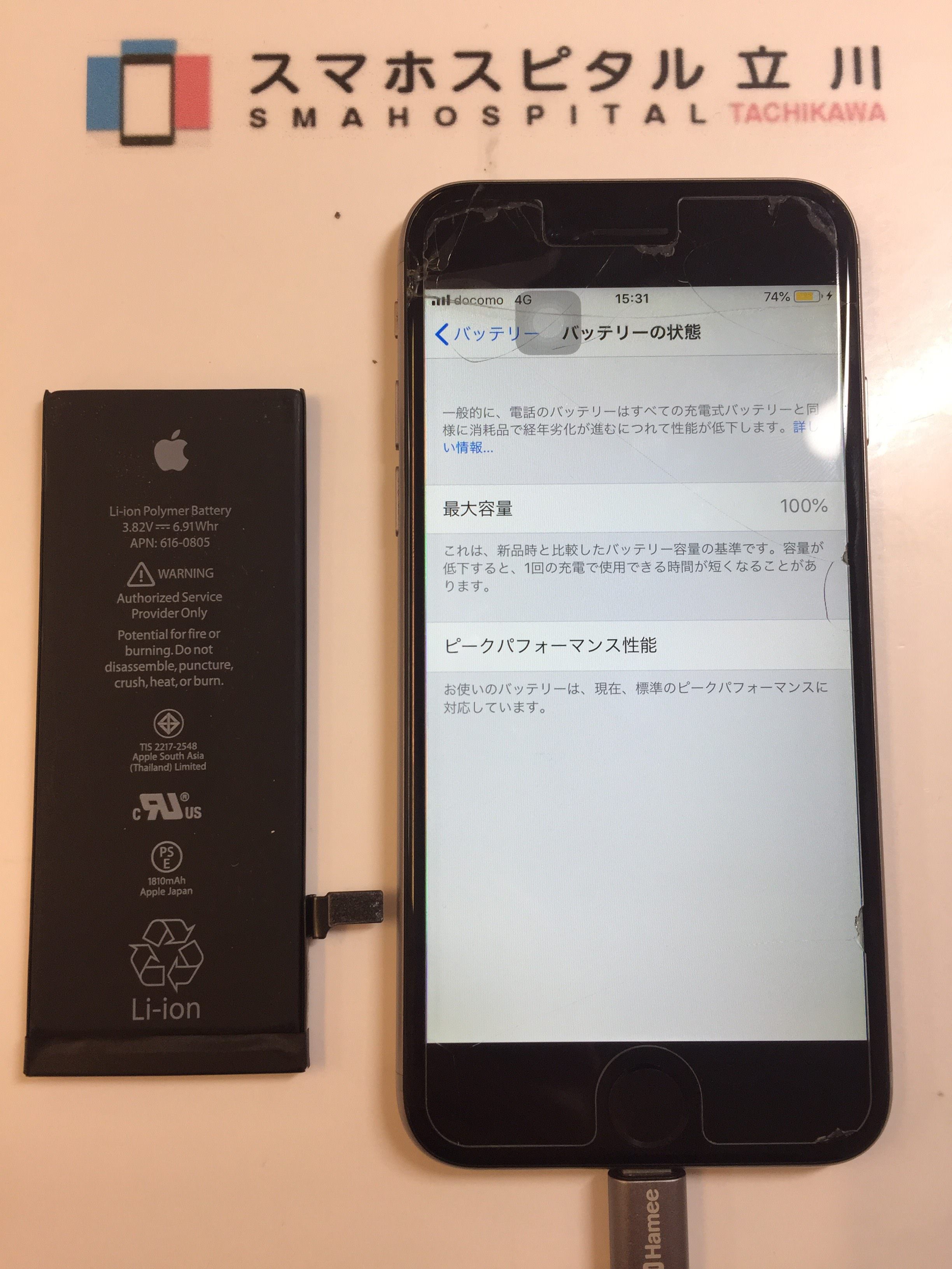 バッテリー交換をして100%に!!゚(人´∀`).☆.。.:*・゚
