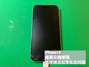 iPhone15 有機EL故障により画面が映らない。即日修理に対応したスマホスピタル立川店にお任せ下さい!