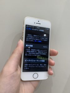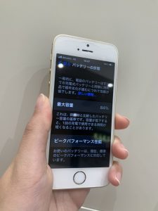 お預かりした端末の劣化具合を確認すると最大容量84%と劣化しておりましたので修理しました!