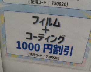 2024年5月5日現在はガラスコーティング3,300円、保護フィルム3,300円を同時に施工すると
