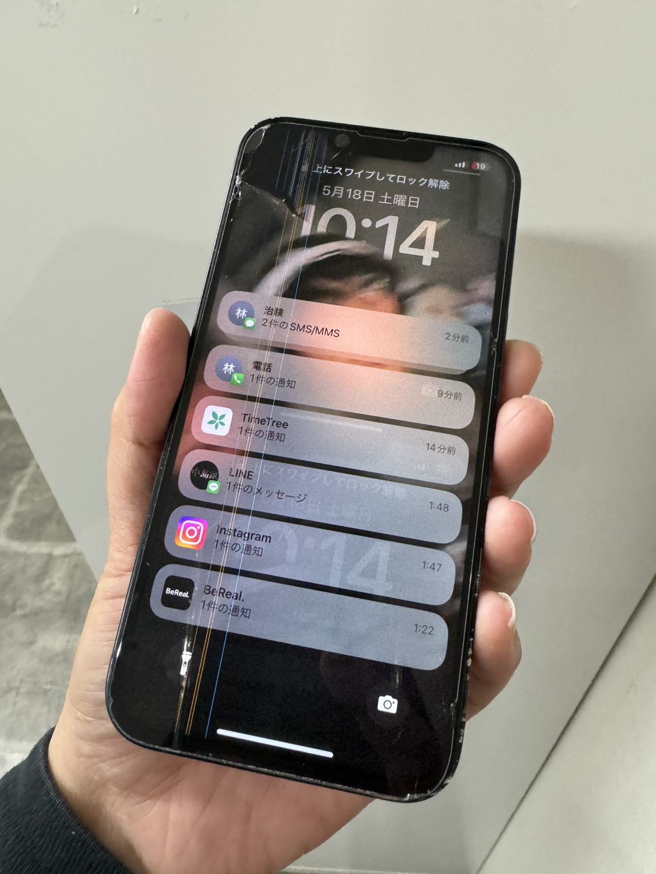 画面が割れて液晶に線が出てタッチ操作ができないiPhone14を即日修理!