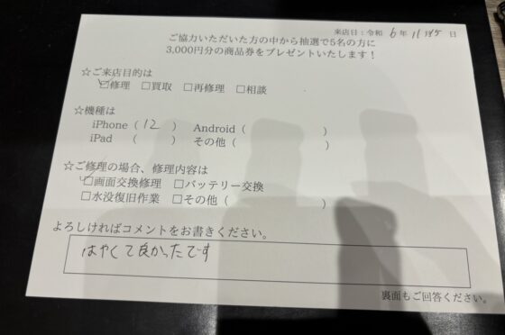 お客様の声【iPhone 12画面修理】