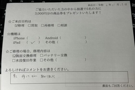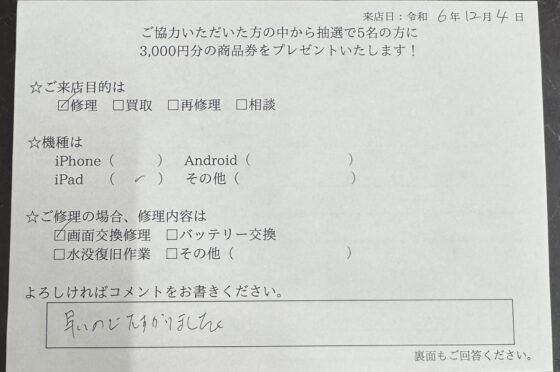 【お客様の声】iPad9のガラス交換