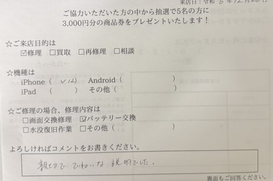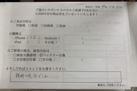 【お客様の声】iPhone12バッテリー交換