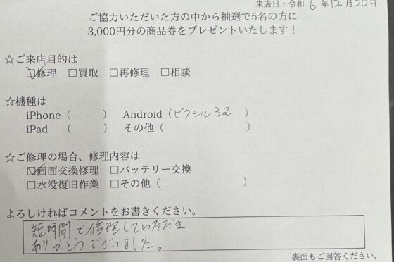 【お客様の声】Google Pixel 3aの画面交換をしました!!