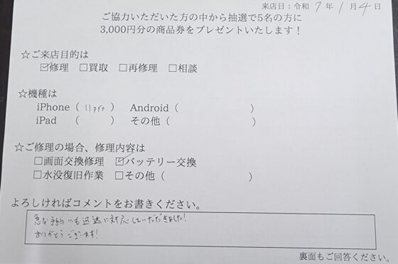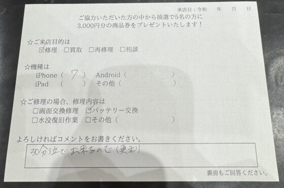 【お客様の声】iPhone7 バッテリー交換をしました!!!