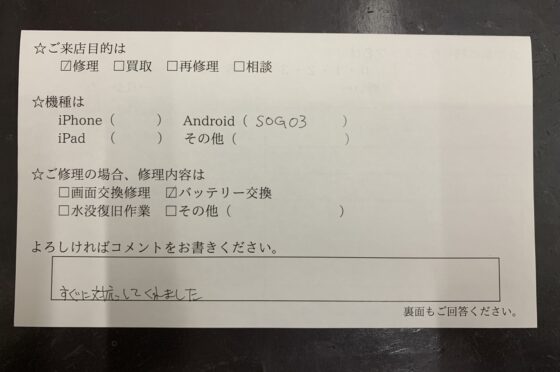 【お客様の声】Xperia1Ⅲバッテリー交換しました