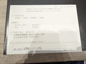 お客様の声【iPhoneSE2のバッテリー交換】