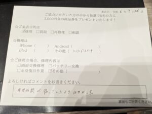 【お客様の声】Xperia1Ⅲバッテリー交換しました