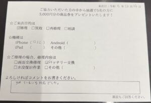 【お客様の声】Xperia1Ⅲバッテリー交換しました