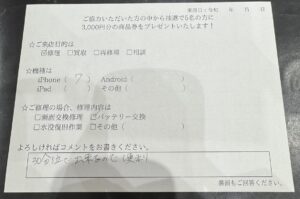 【お客様の声】iPhone7 バッテリー交換をしました!!!