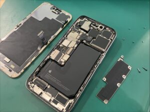 分解したiPhone15Proを組み立て直したら画面交換修理は完了です。