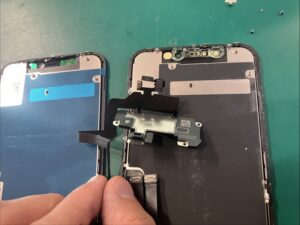 交換するのは画面のみなので、移植パーツのイヤースピーカーを外します。