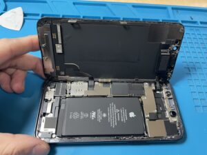 iPhone 13のバッテリーを熱などを用いてゆっくり外していきます。