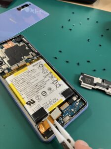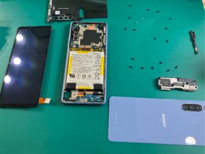 ここまでの分解を巻き戻し、新しい画面へ交換して、Xperia 10 Ⅲの画面交換修理の完了です。