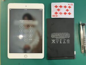 本日はiPad mini4のバッテリー交換修理をご依頼いただきました。