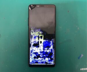 落下による画面割れ、そして液晶漏れの重度の画面破損状態…でお持ち込みしていただきました。