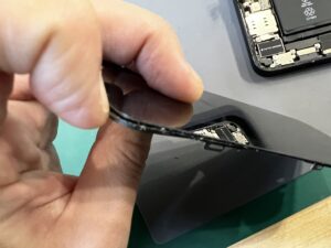 しっかりと粘着を緩め、バッテリーを絶縁して、安全に液晶を剥がすことが出来ました。