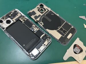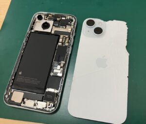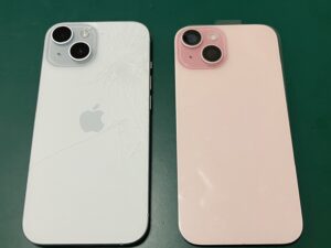 今回はiPhone 15の背面パネル交換修理をご依頼いただきました。