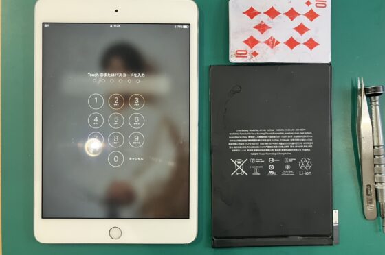 【iPad mini4】充電が1%から上がらない。起動が不安定。…バッテリー交換修理