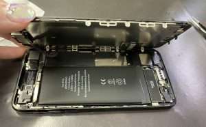 膨張したバッテリーのせいで隙間が開いたアイフォンの修理!