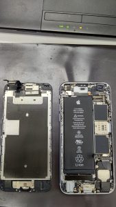 ケーブルを切らないように慎重にiPhoneを開きました。