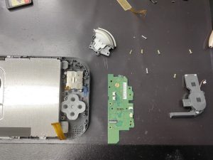 緑の基板の下にアナログスティックのパーツがあるのでさらに分解していきます。
