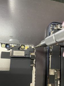 そして、画面にはFaceIDのパーツがネジで固定されているので