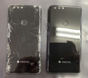 画面の損傷が特にひどく真っ暗な画面で何も表示されない状態のFREETELを修理しました!