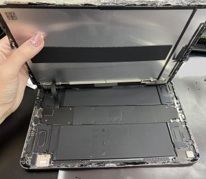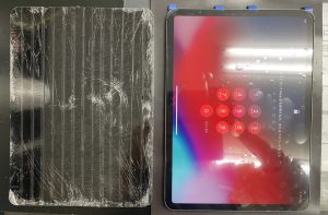 このように、画面がバキバキに割れているiPadでも元通りになおります。