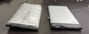 左が膨張したバッテリーで右が正常なバッテリーです。