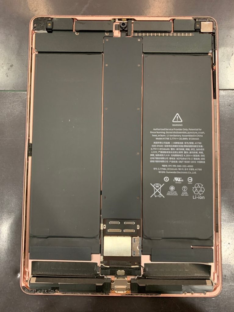 iPadはタブレットのため本体が大きく、その分内部のバッテリーも大きなサイズとなっています。